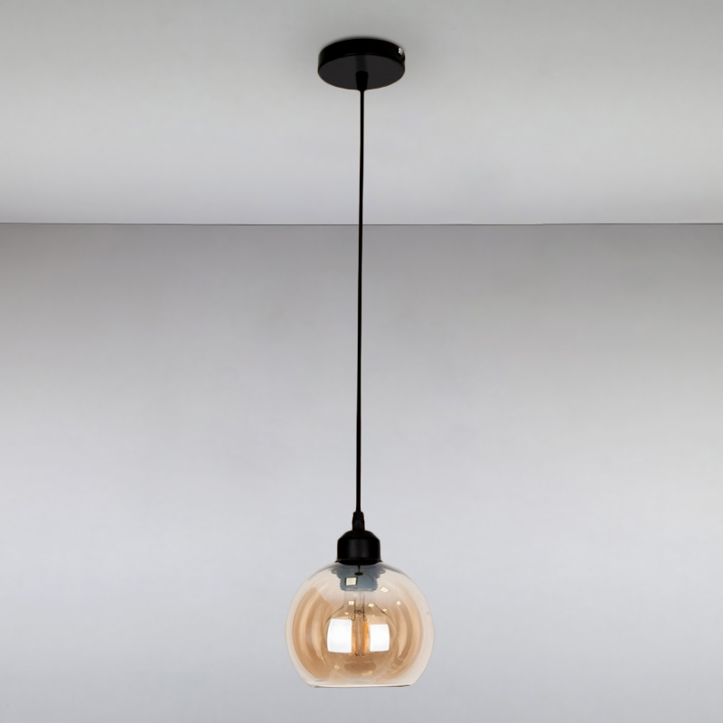 Люстру подвес на одну лампу в стиле лофт из черного металла и с плафоном из коричневого стекла в виде шара, можно купить в нашем магазине.