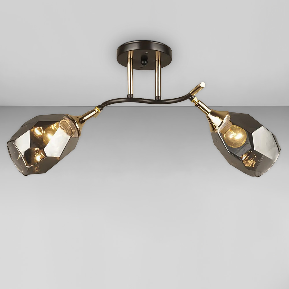 Потолочная люстра на две лампы со стеклянными плафонами формы многогранника с поворотным механизмом.