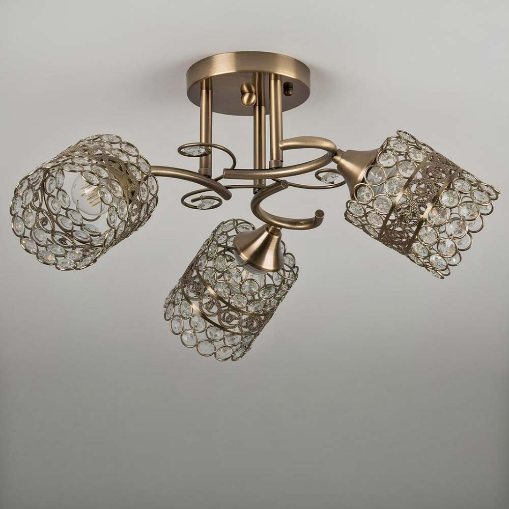 Современная потолочная люстра на три лампы оснащена металлическими плафонами цилиндрической формы с хрустальными вставками: что обеспечит изысканный блеск и создаст интересную игру света и тени при включенном источнике света. Лучше всего эта люстра подойдет для помещений с общей площадью 9 м², при использовании лампочек 6 Вт (LED) или 60 Вт (стандартная) будет актуальна для помещений с невысокими потолками.