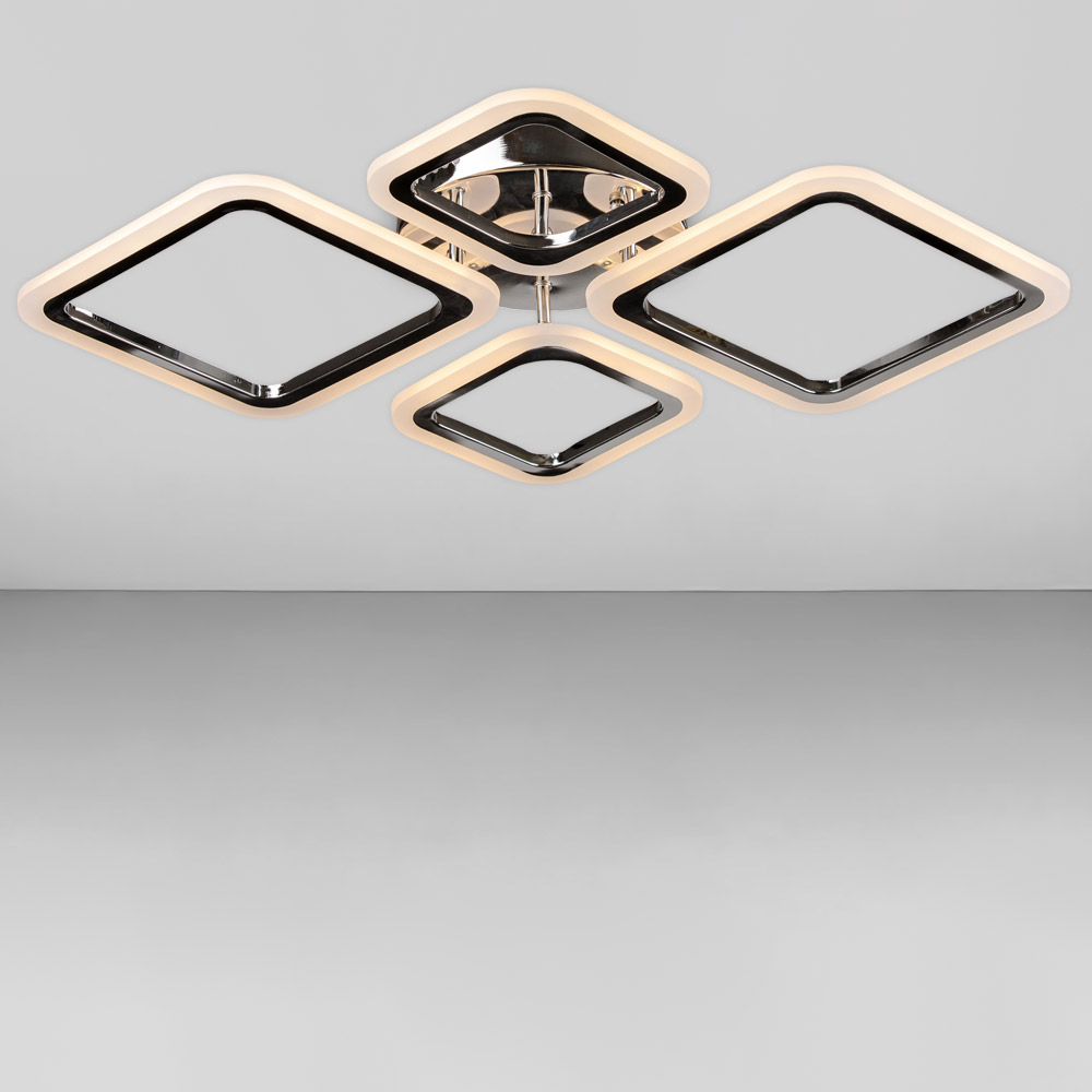 Потолочная светодиодная люстра в современном стиле, на четыре источника света в виде LED квадратов с диммером. Лучше всего использовать в помещении с общей площадью 20 м².