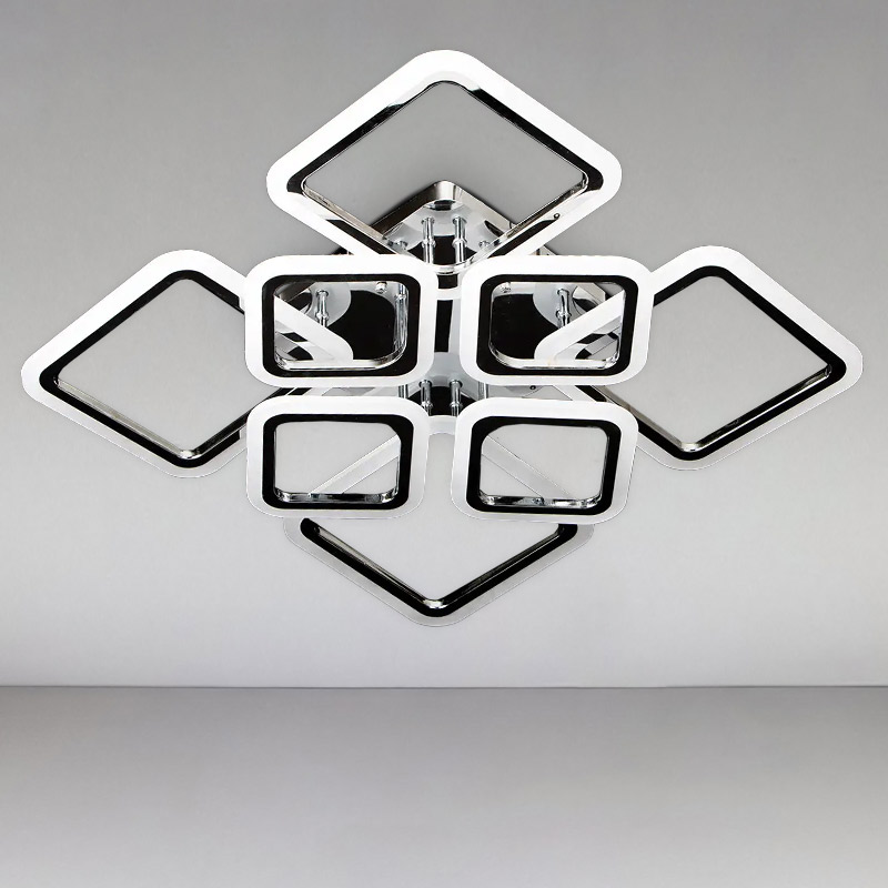 Современная потолочная светодиодная люстра на восемь источников света в виде LED квадратов, идеально подойдет для невысоких потолков. Перед Вами результат совмещения лучших практик в современном освещении. В этой модели свет от LED ленты, которая устанавливается на большинство наших светодиодных люстр. Рассеиватель выполнен из акрила, который равномерно распределяет свет и мягко освещают помещение.