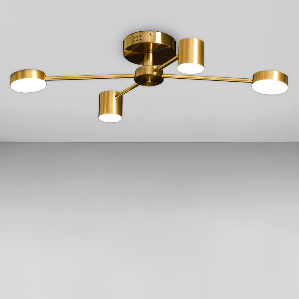 Потолочная светодиодная люстра в современном стиле, на четыре источника света в виде LED цилиндров.