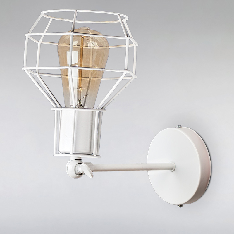 Настенный светильник бра с регулировкой угла освещения с плафоном в виде металлической клетки.