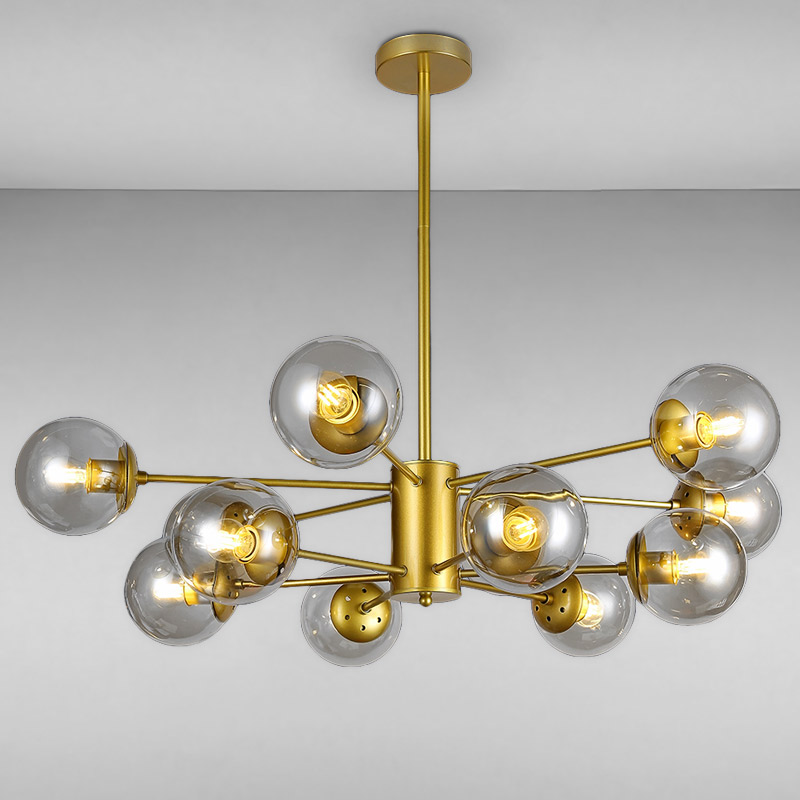 Люстра молекула на жорсткому підвісі на дванадцять ламп з плафонами у формі кулі.