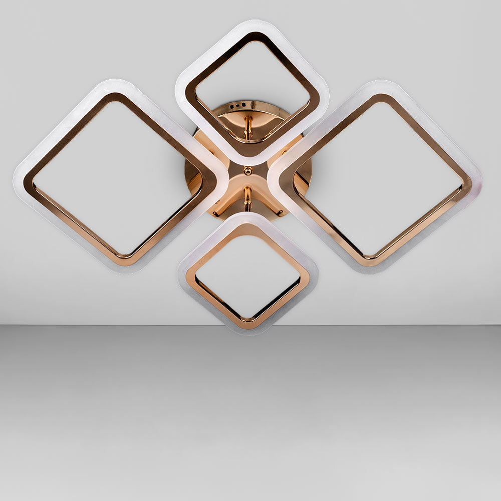 Стельова світлодіодна люстра у сучасному стилі, на чотири джерела світла у вигляді LED квадратів з димером. Найкраще використовувати в приміщенні із загальною площею 20 м².