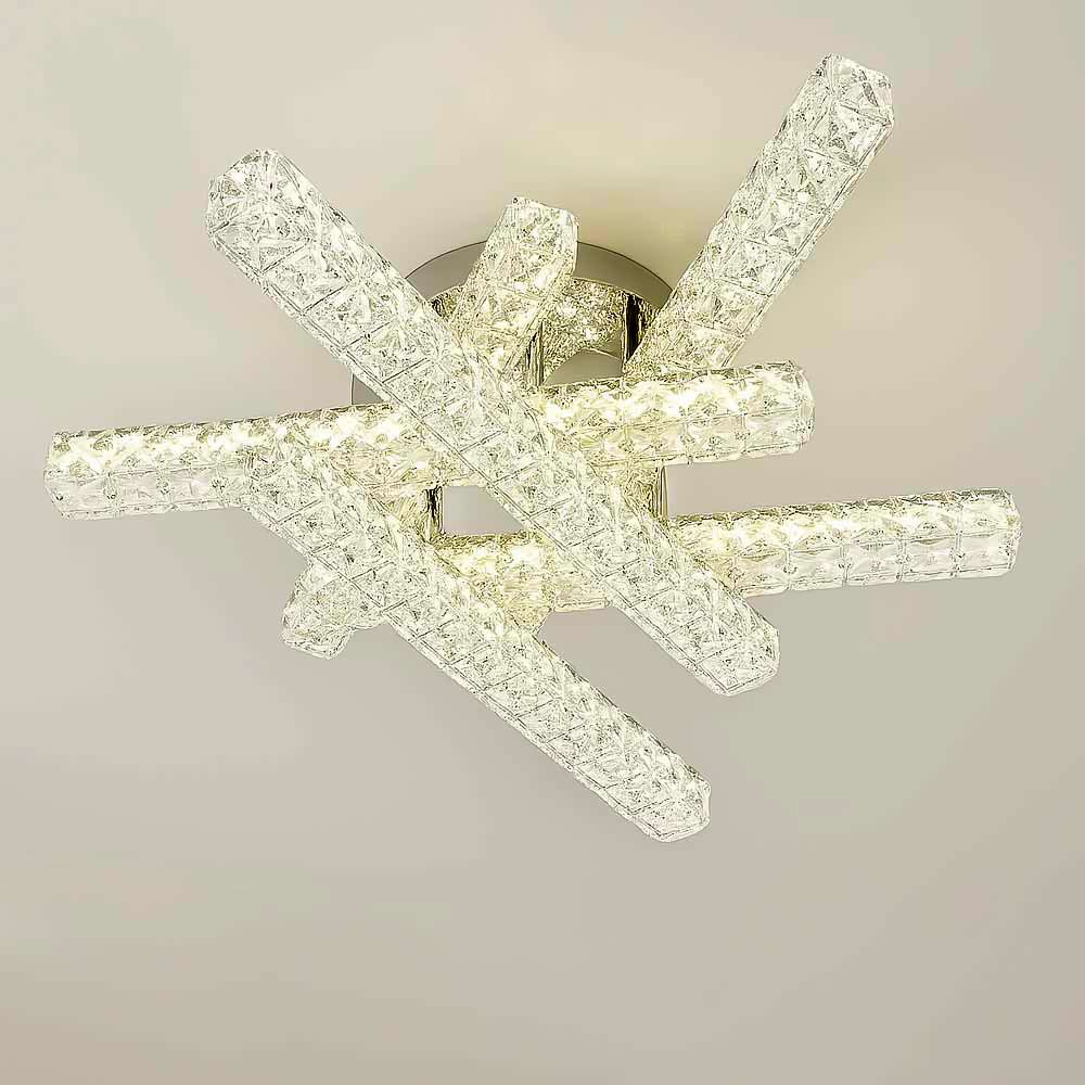 Стельова світлодіодна люстра у сучасному стилі, на шість джерел світла у вигляді прямокутних LED планок із кришталевими вставками. Люстра оснащена пультом управління.